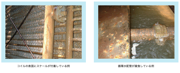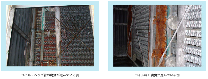 行います。コイルの表面にスケールが付着すると、熱交換効率が大幅に低下してしまいます。