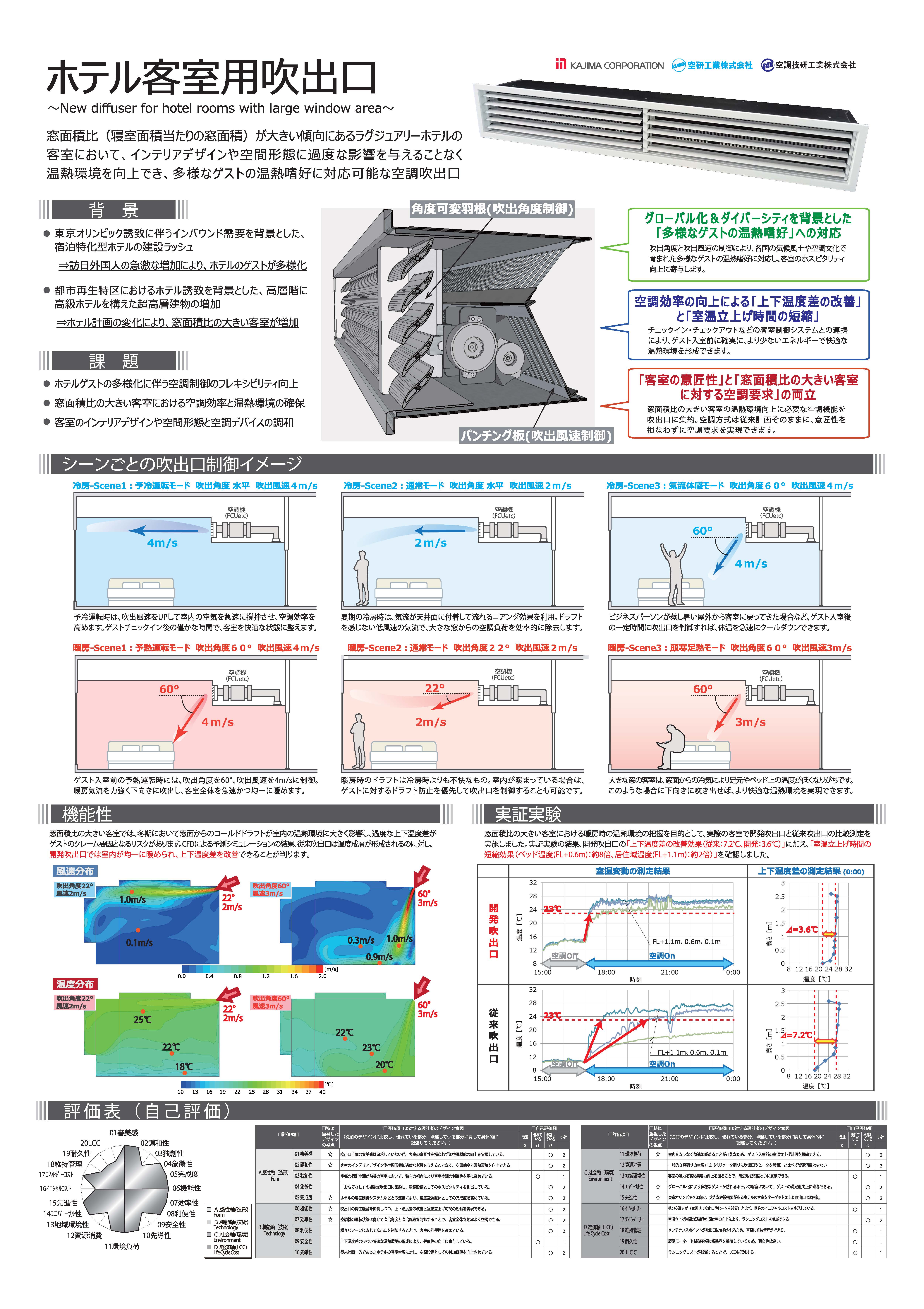 一般財団法人 建築設備綜合協会 第17回環境・設備デザイン賞 「第Ⅰ部門;設備器具・システムデザイン部門」におきまして 「ホテル客室用吹出口」が「BE賞」を受賞しました。 KASJIMA DESIGN殿・鹿島建設株式会社殿・空調技研工業株式会社殿と共同応募した商品です。