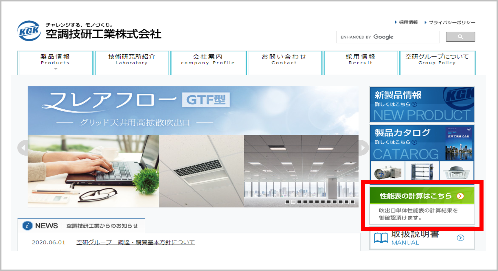 空調技研工業(株)のホームページ(http://www.kuchogiken.co.jp/)の