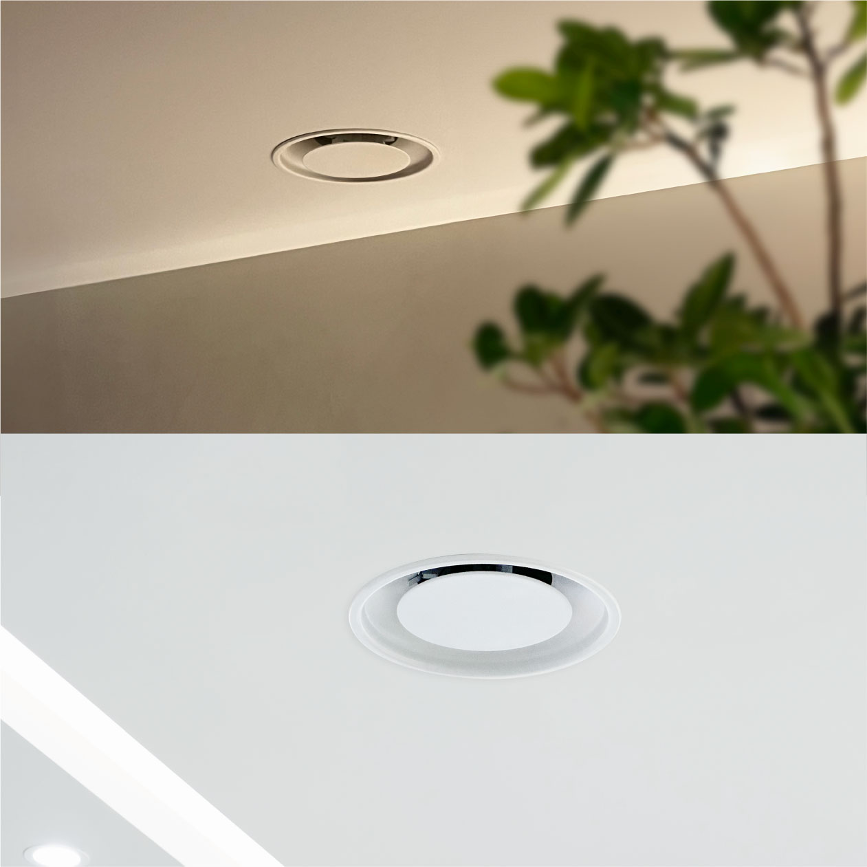 Air Ring®は、天井に設置され、空調された空気を室内に拡散するシーリングディフューザーです。既存のシーリングディフューザーは中パンの膨らみや外コーンエッジ部分の立ち上がり幅が大きいことから空間デザインのノイズとなっていました。